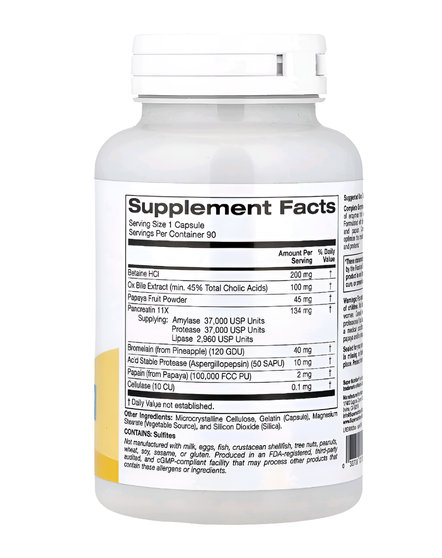 زیادکردنی تەواوکەری ئەنزیم بۆ خۆراکەکەت دەتوانێت یارمەتیدەر بێت بۆ پشتگیریکردنی پرۆسەی سروشتی جەستەت و تەندروستی بەرگری گشتی*. تەواوکەرەکەمان تایبەتمەندی تێکەڵەیەک لە ئەنزیمەکانی تێدایە کە بە تایبەتی هەڵبژێردراون بۆ پشتگیریکردنی هەرسکردنی تەندروست.* تێکەڵە ناوازەکە بریتییە لە برۆمیلین، زەرداوی گا، پەنکریاس و پاپاین، کە یارمەتیدەرە بۆ باشکردنی تێکچوونی کاربۆهیدرات و چەوری و پرۆتینەکان.*