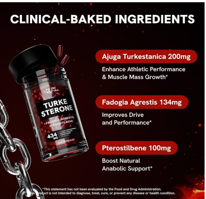 گەشەی ماسولکەکان**: پێدەچێت تورکیستیرۆن یارمەتی دروستکردنی پڕۆتینی ماسولکەکان بدات، ئەمەش دەبێتە هۆی زیادبوونی بارستەی ماسولکە و هێز بەبێ کاریگەرییە لاوەکییە ئەندرۆجینییەکانی پەیوەست بە ستیرۆیدەکانی ئەنابۆلیکی تەقلیدی.