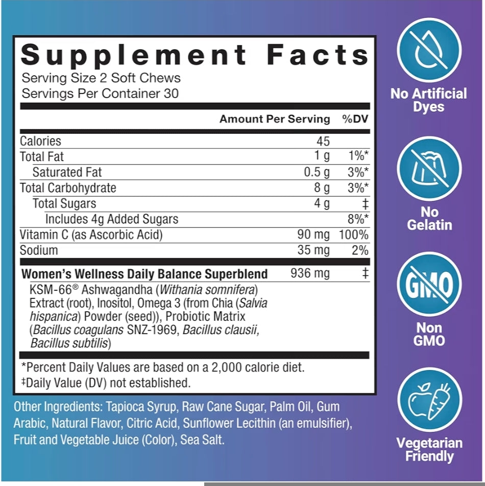 سوپەربڵەندی هاوسەنگی ڕۆژانە: لەگەڵ سێ جۆری پرۆبایۆتیک و KSM-66 Ashwagandha، ئەم تێکەڵەی تەندروستی ڕۆژانەی زێ یارمەتی پشتگیریکردنی تەندروستی زێ و هاوسەنگی هۆرمۆنەکان دەدات، لە ناوەوە.